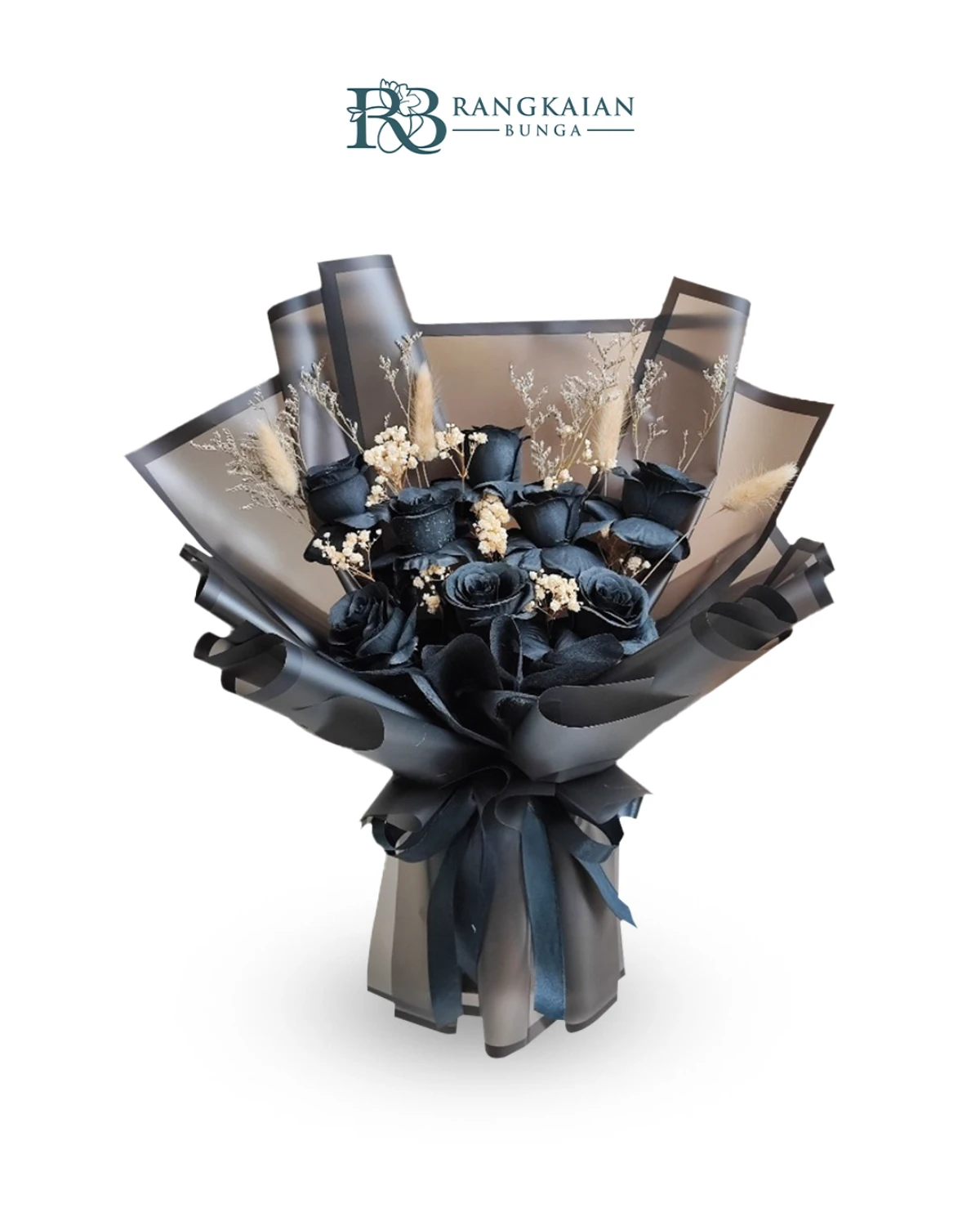 RangkaianBunga Black Velvet dirangkai estetik dalam wrapping elegan yang cocok untuk momen spesial seperti anniversary, lamaran, ulang tahun, wisuda, hingga hadiah kejutan kasih sayang untuk seorang terkasih. Bouquet ini terdiri dari :