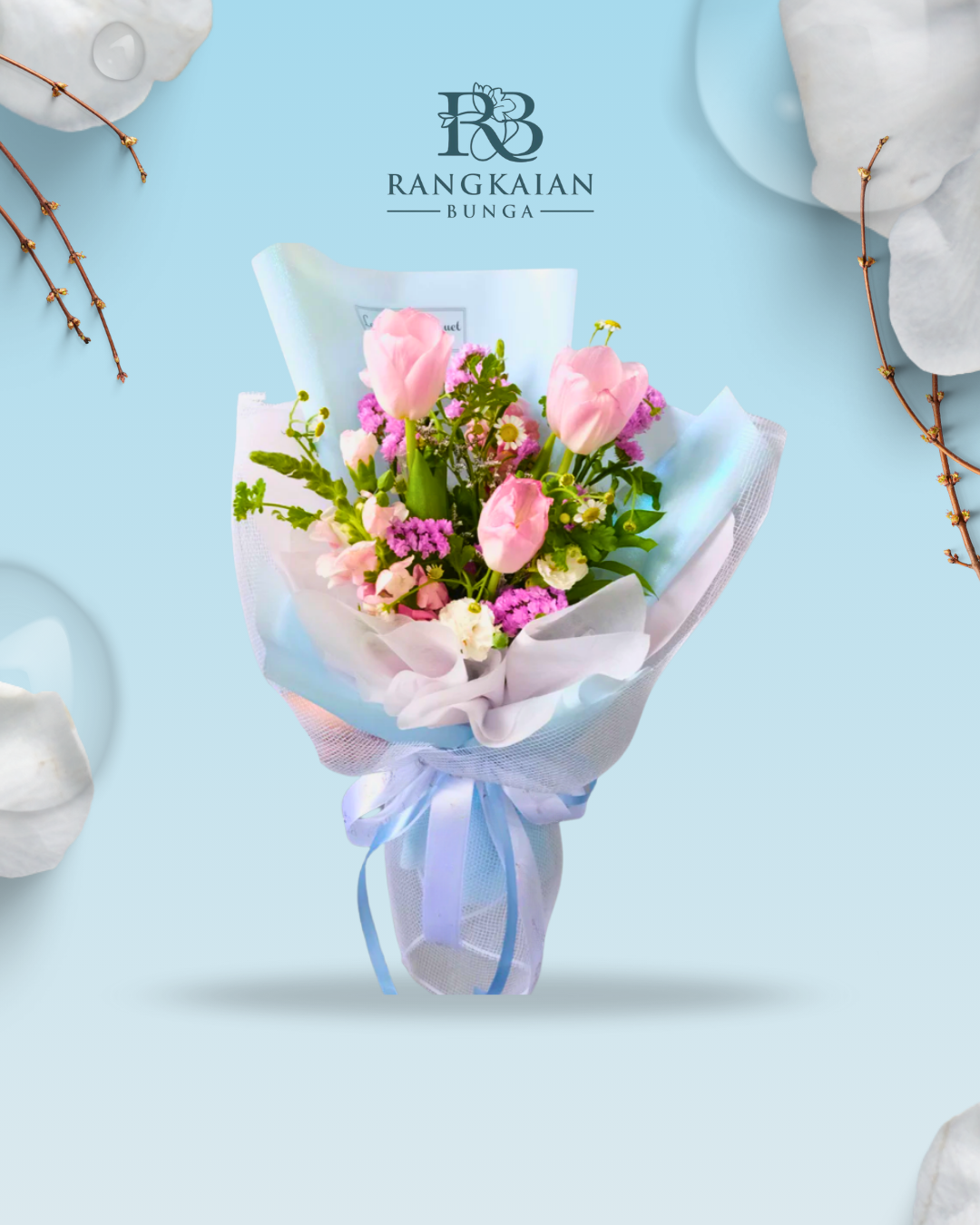 Luna Grace – 001 ini cocok diberikan untuk acara graduation, anniversary, ucapan terima kasih, ucapan kasih sayang untuk seorang terkasih. Bouquet ini terdiri dari :