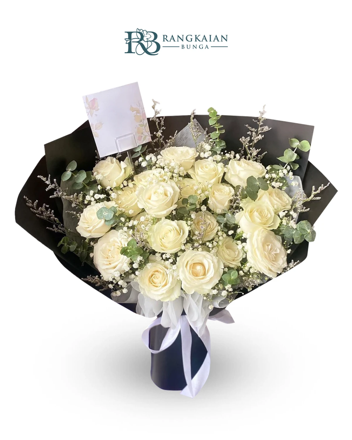 RangkaianBunga Snowy Serenity dirangkai estetik dalam wrapping elegan yang cocok untuk momen spesial seperti anniversary, lamaran, ulang tahun, wisuda, hingga hadiah kejutan kasih sayang untuk seorang terkasih. Bouquet ini terdiri dari :