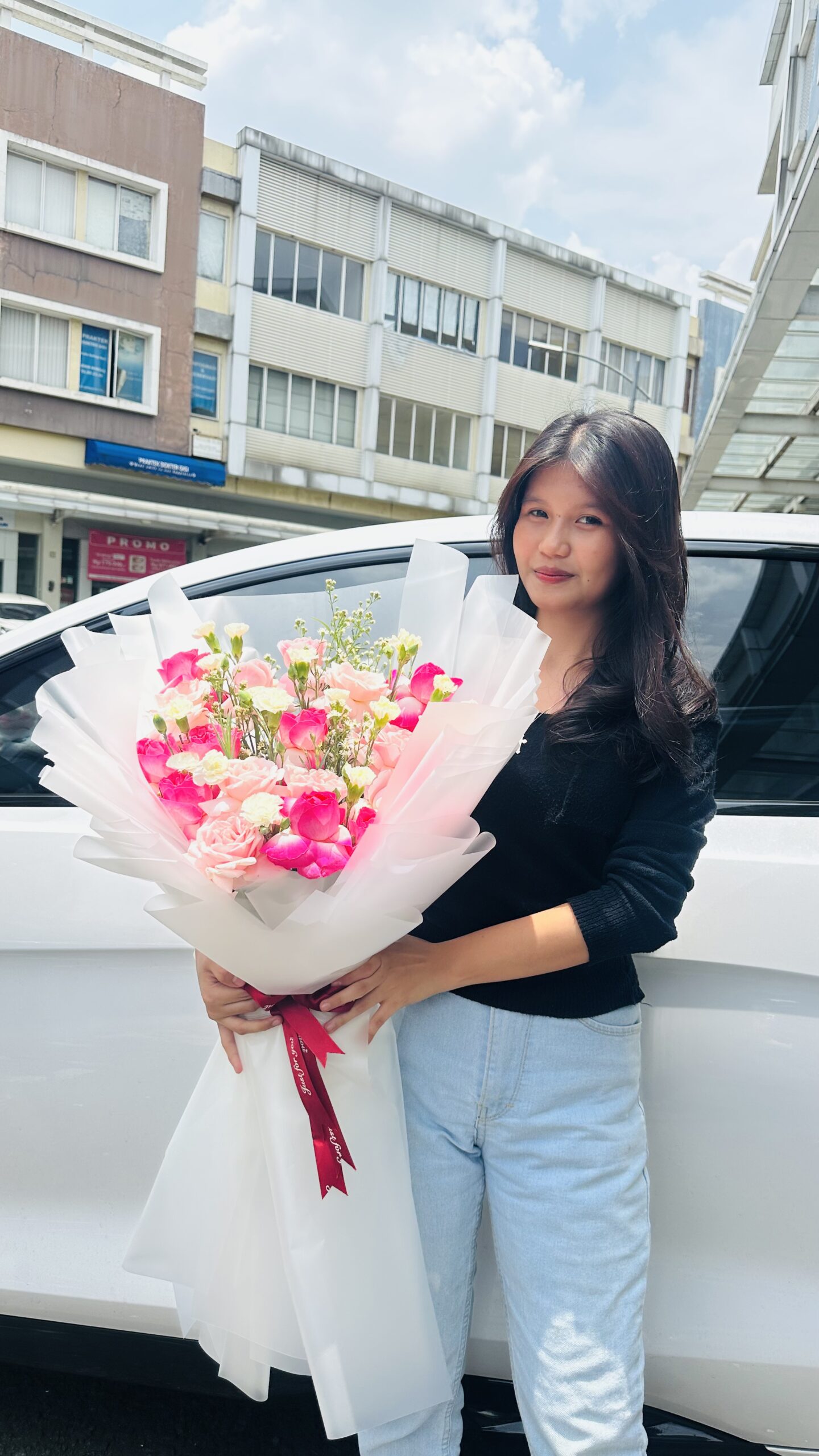 “Saya memesan bucket bunga untuk acara kantor, dan teman2 pada suka bucket bunganya...”