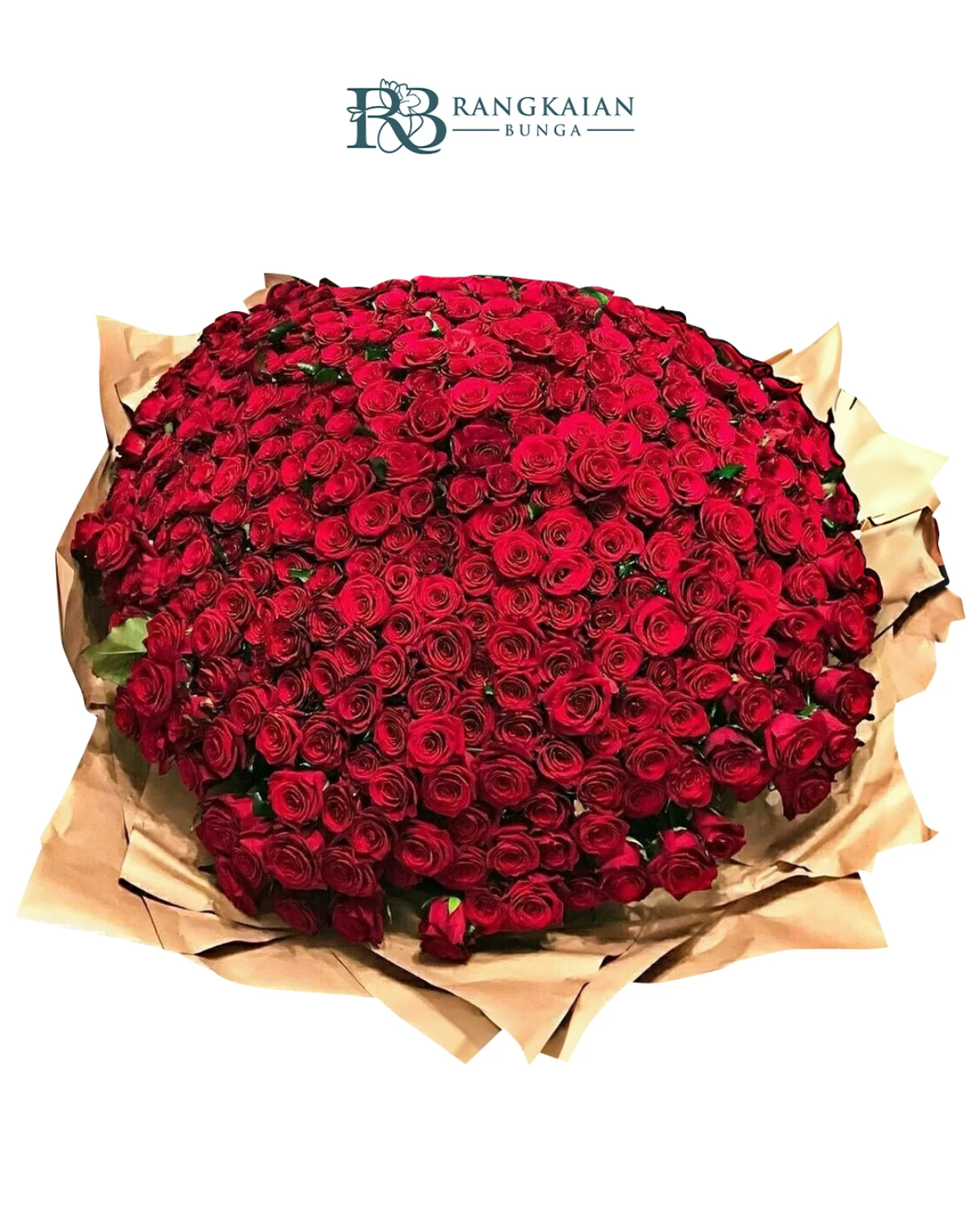 RangkaianBunga Huge 1000 Stem Roses dirangkai estetik dalam wrapping elegan yang cocok untuk momen spesial seperti anniversary, lamaran, ulang tahun, wisuda, hingga hadiah kejutan kasih sayang untuk seorang terkasih. Bouquet ini terdiri dari :