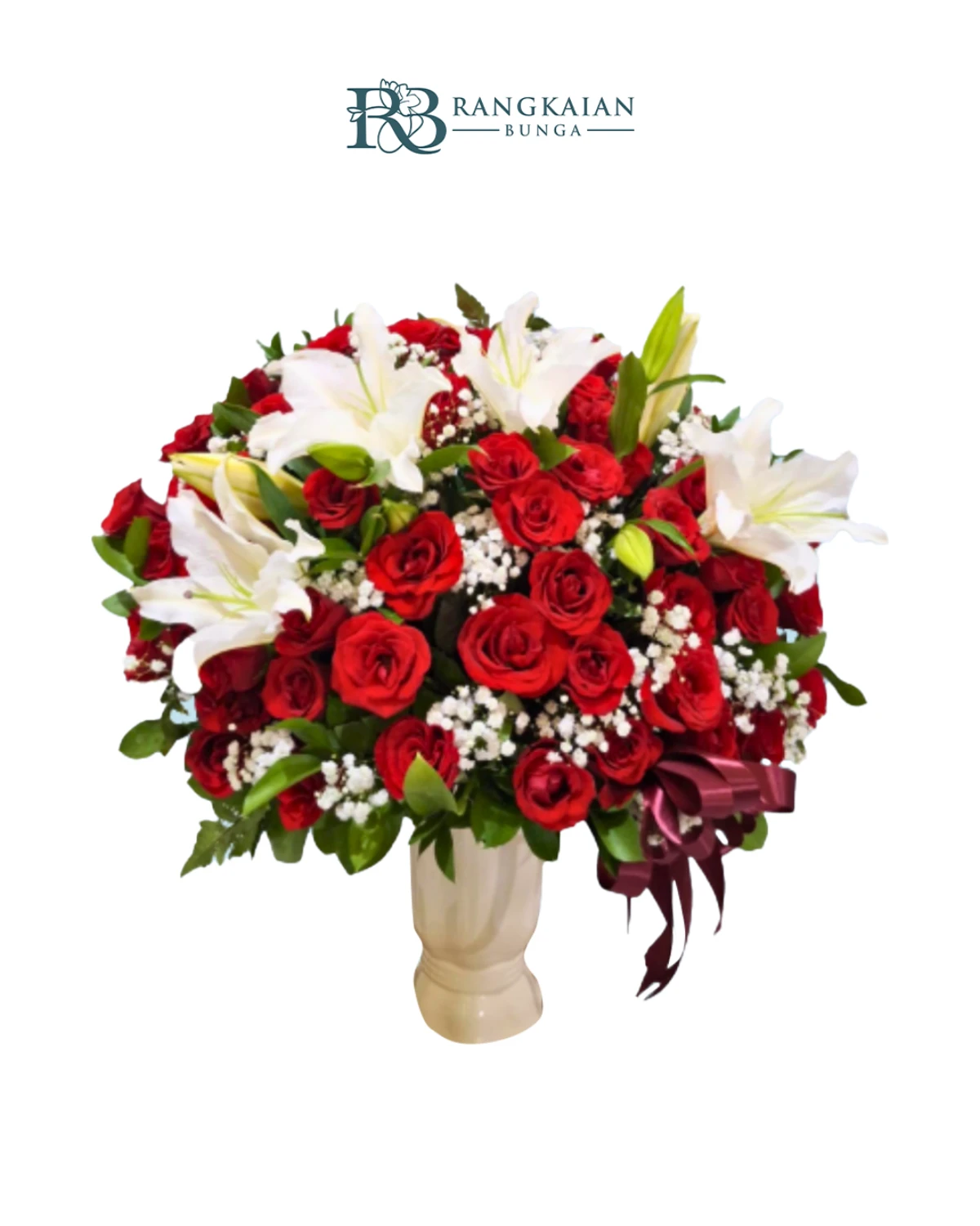 Bouquet Bunga Crimson Desire ini cocok diberikan untuk acara graduation, anniversary, ucapan terima kasih, ucapan kasih sayang untuk seorang terkasih. Bouquet ini terdiri dari :