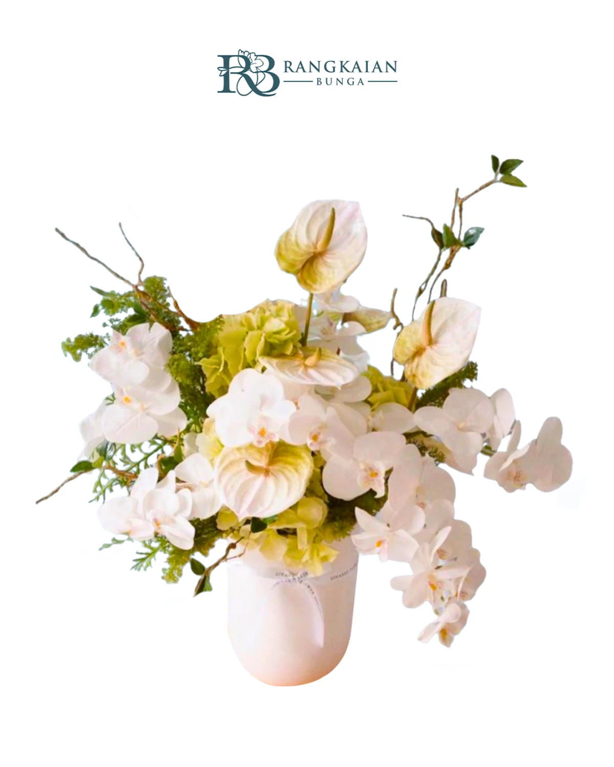 Bouquet Bunga White Tranquility ini cocok diberikan untuk acara graduation, anniversary, ucapan terima kasih, ucapan kasih sayang untuk seorang terkasih. Bouquet ini terdiri dari :